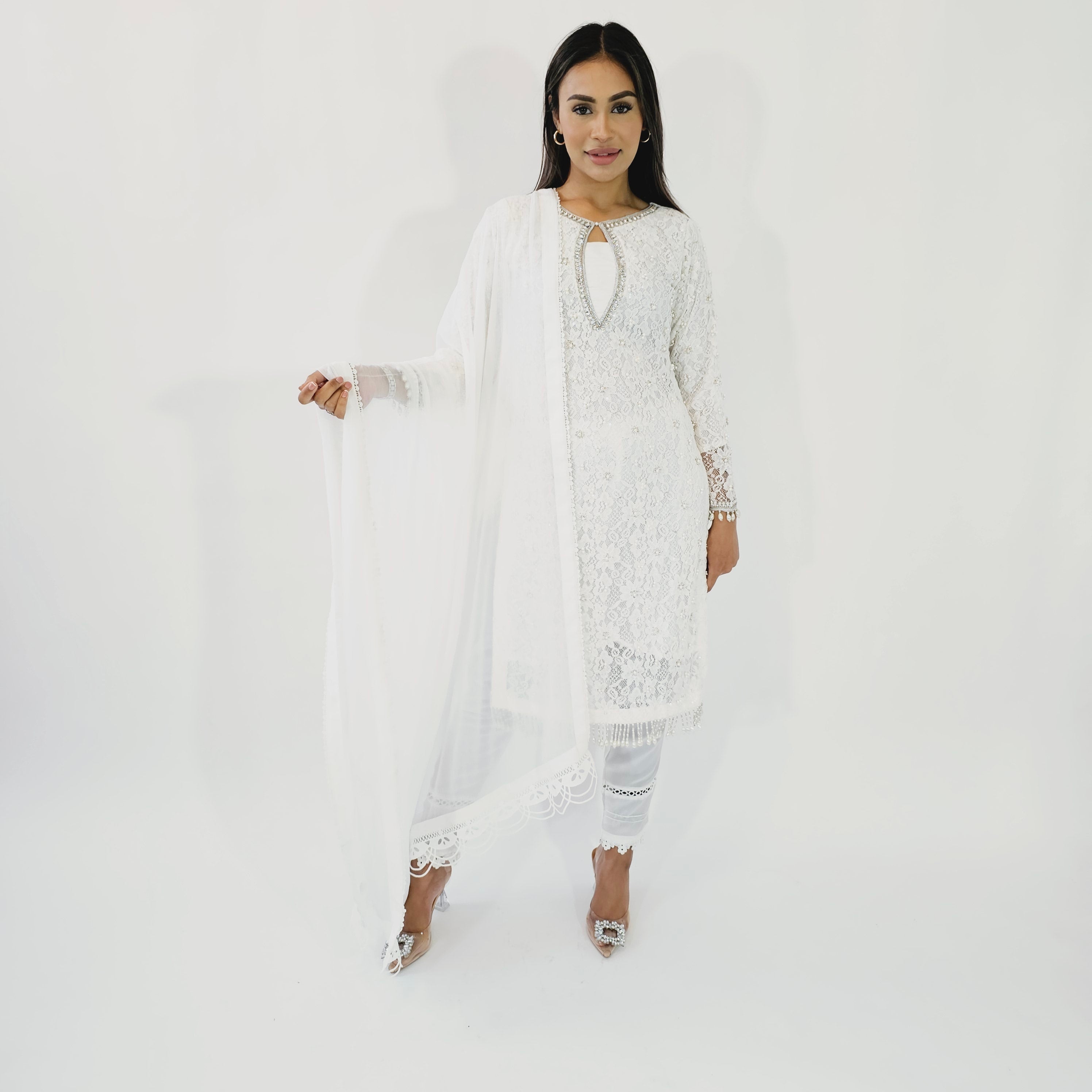 • Chiffon dupatta with lace.