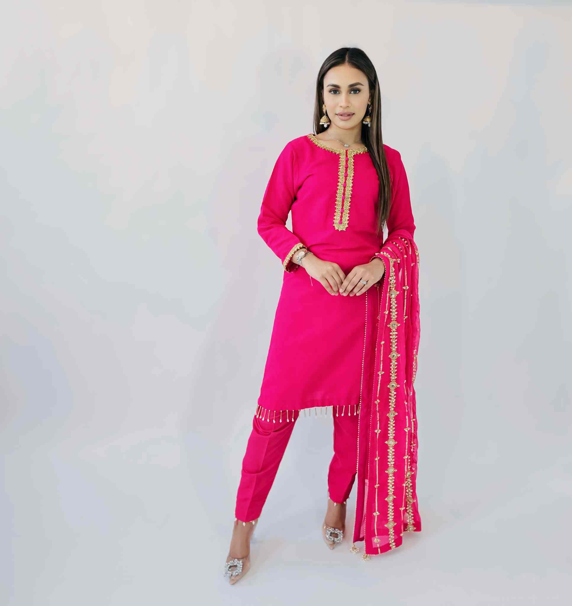 • Fabric Raw Silk Suit With Chiffon Dupatta