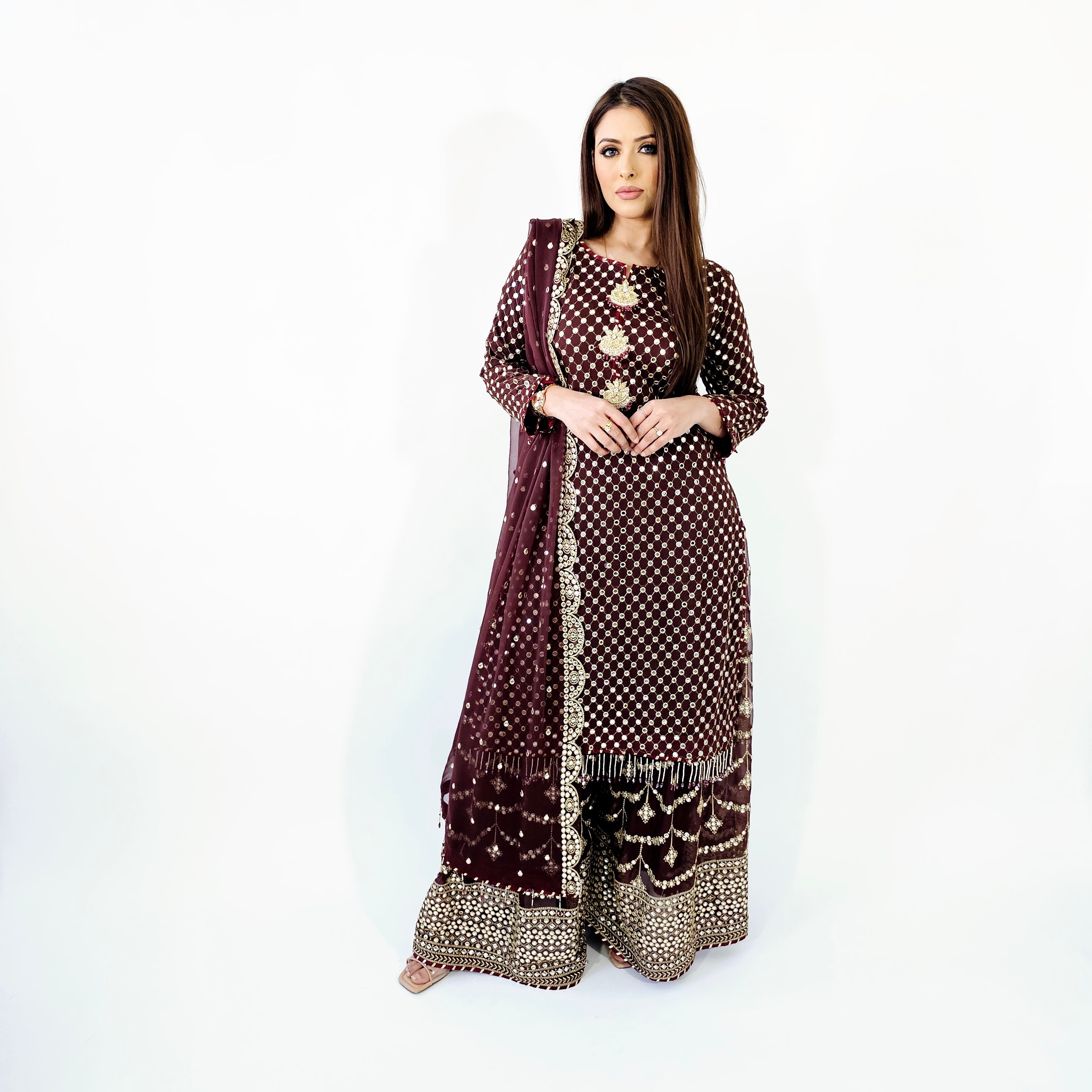 • Disclaimer: Outfit  has foil mirrors embroidery all over which might some loose threads and foil overlap . This is not a defect,  this is how it is  manufactured.