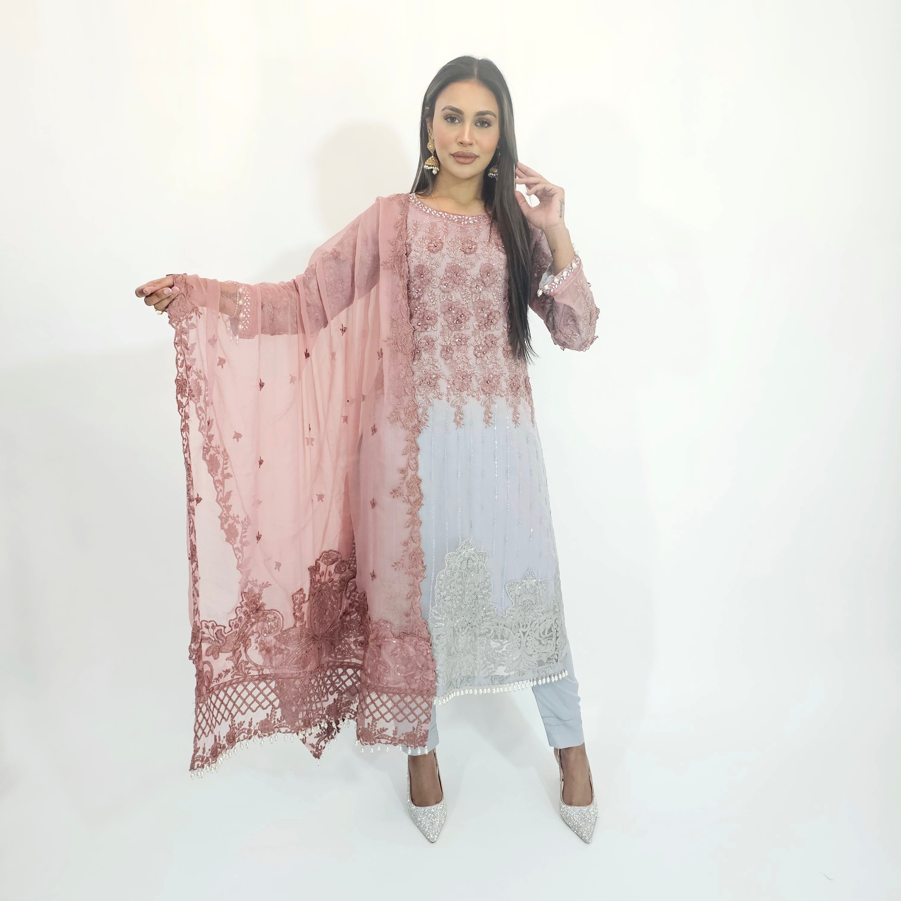 • Beautiful embroidered kameez with sequins and beads.