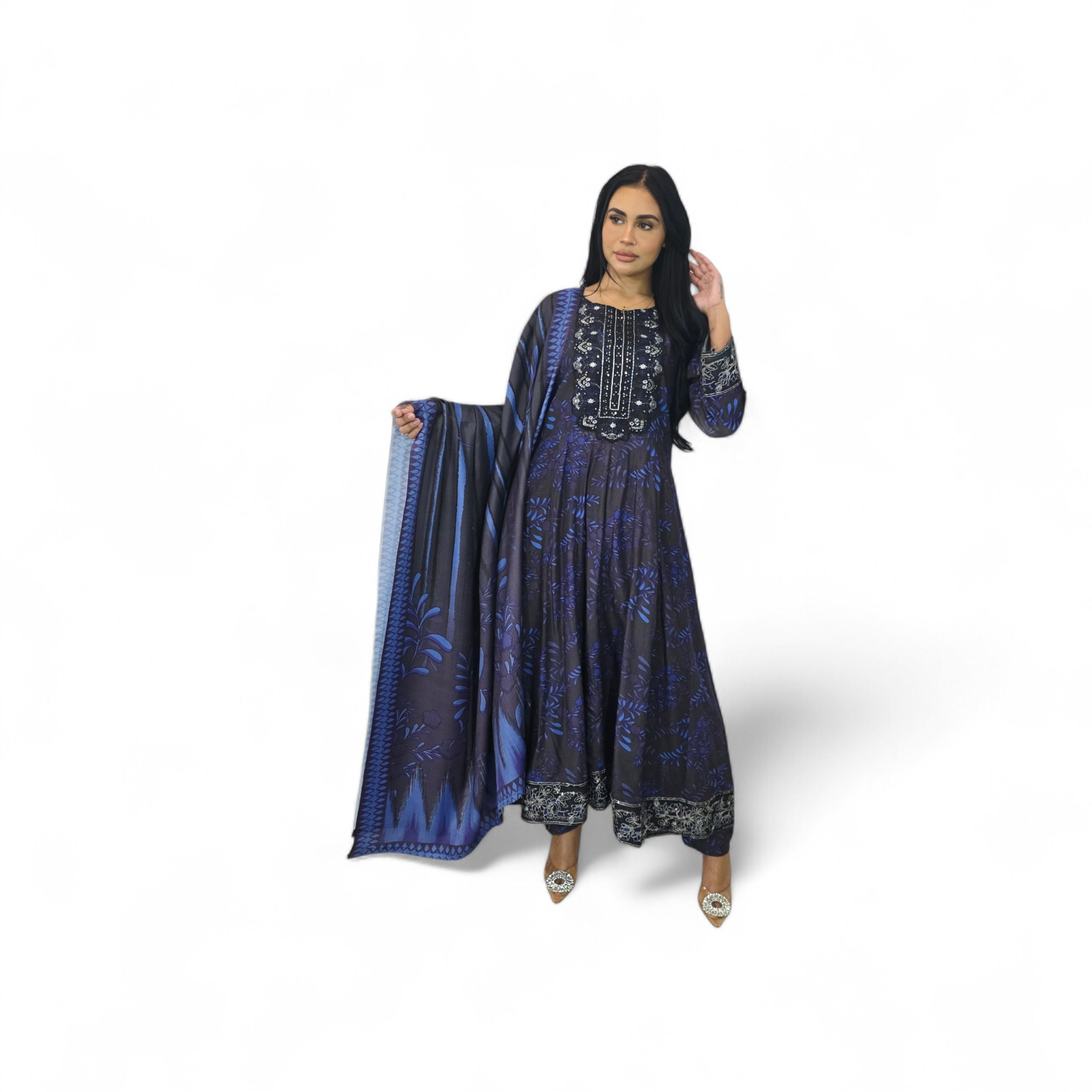 • Printed  back with embroidered daman