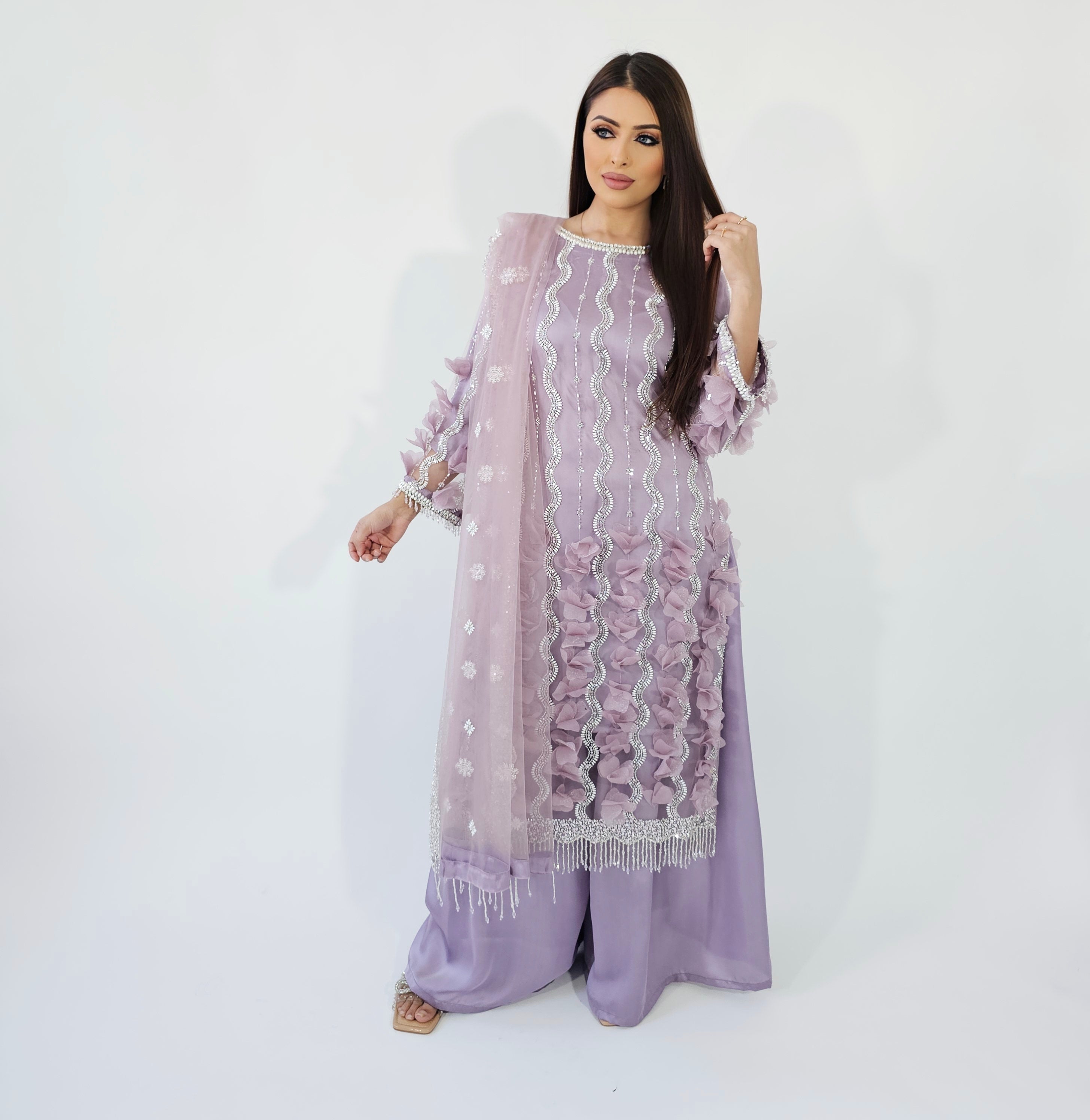 • Beautiful cut dana  embroidered kameez with beads, sequins and 3d flowers.
