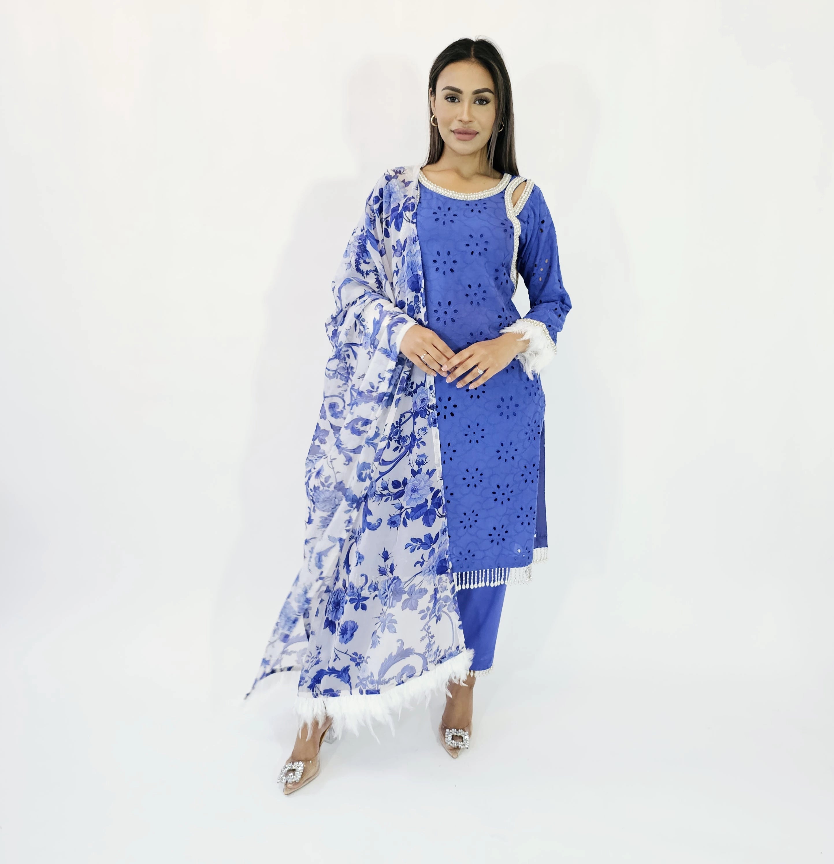 • Lawn chikkan kari lined  suit beaded lace  on neck and sleeves.