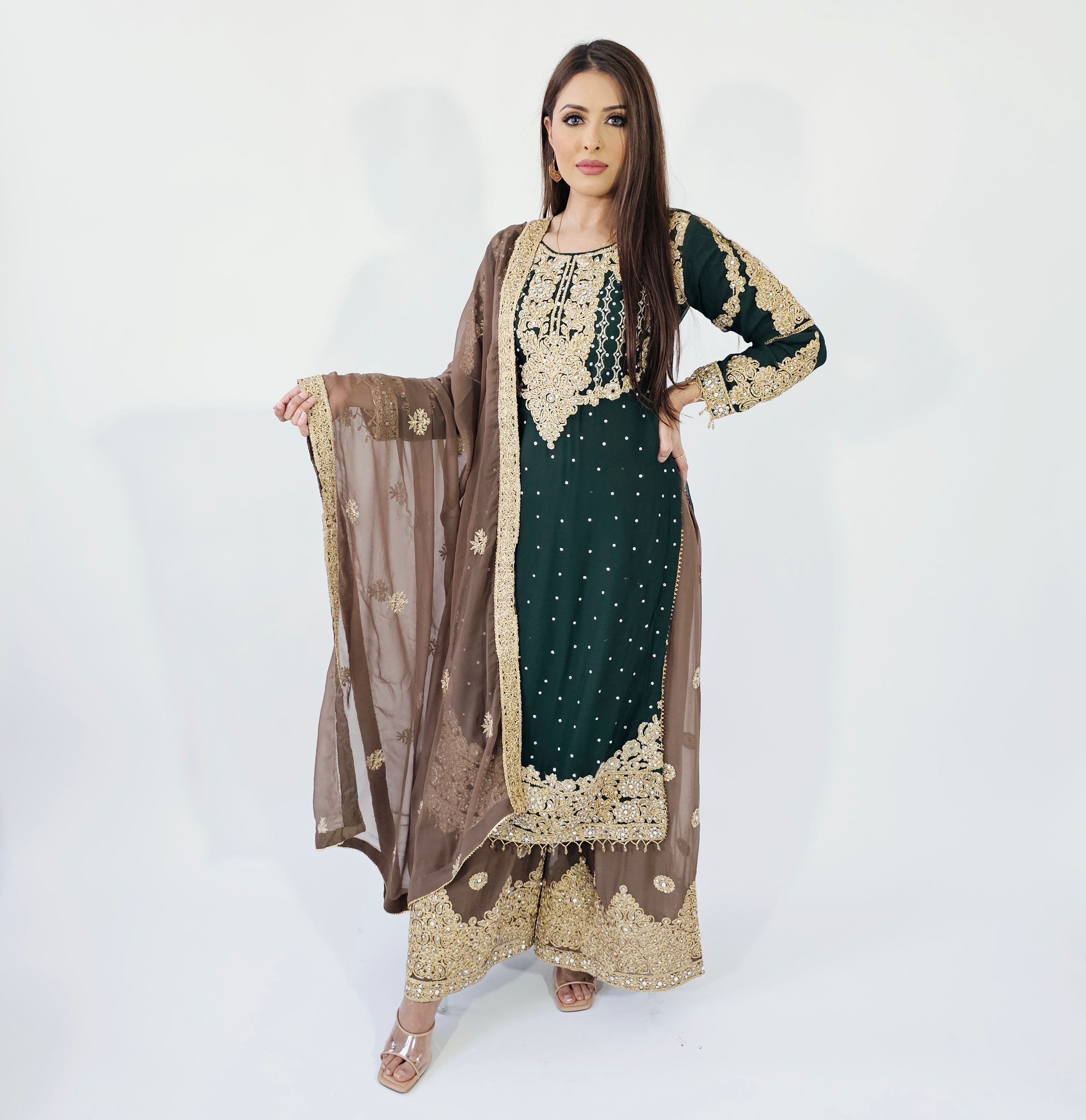 • Chiffon Front heavily dori embroidered with stones
