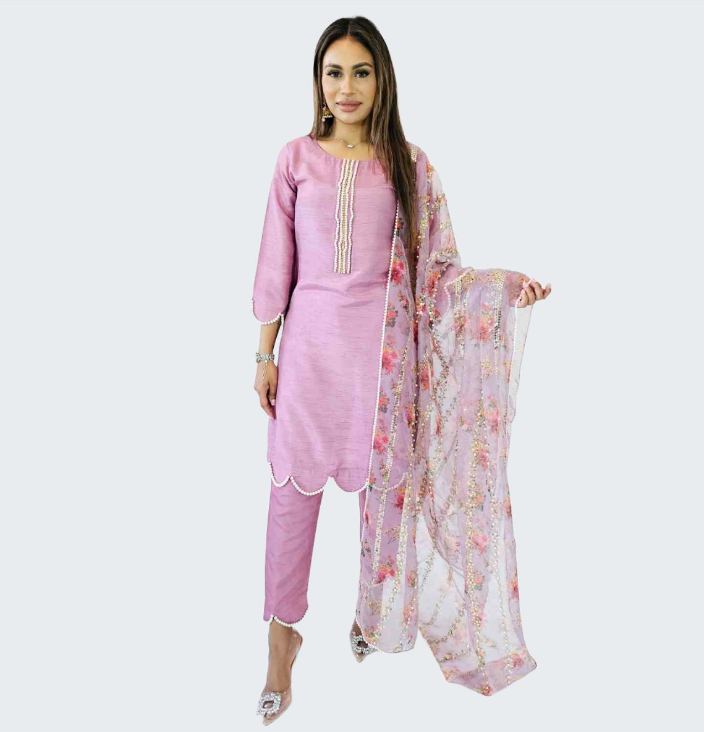 • Pure Korean Raw silk kameez with fancy  bead detailing