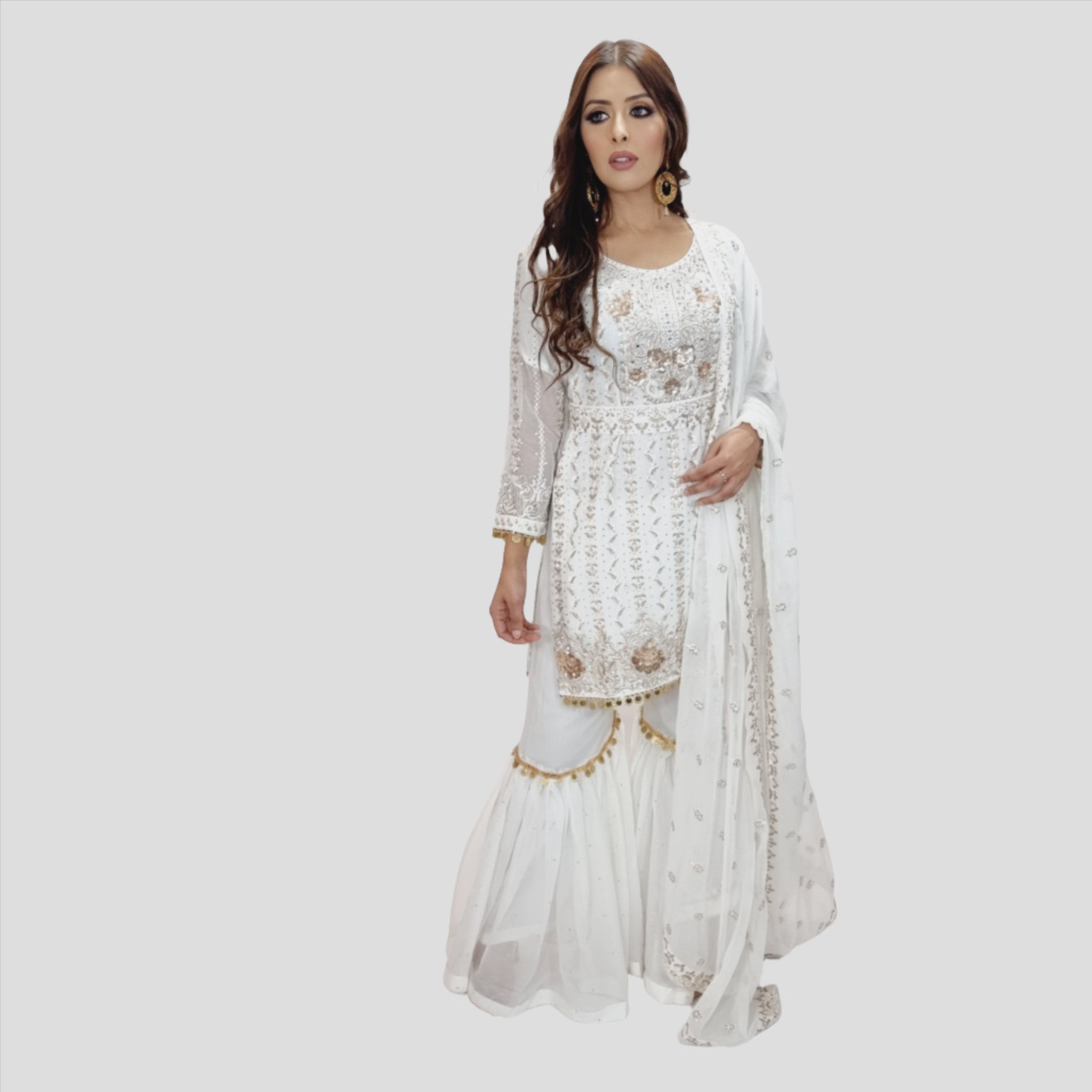 Chiffon kameez with embroidery and stonework on Front and sleeves