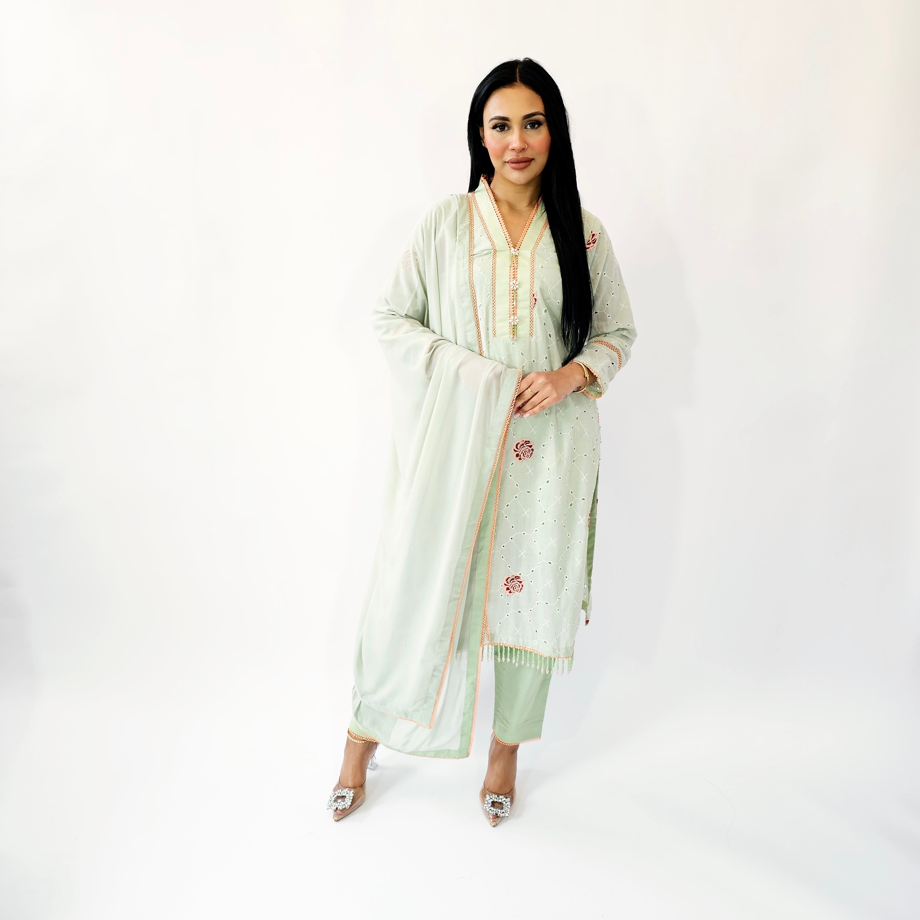• Lawn chikkan kari lined  suit with beautiful lace detail