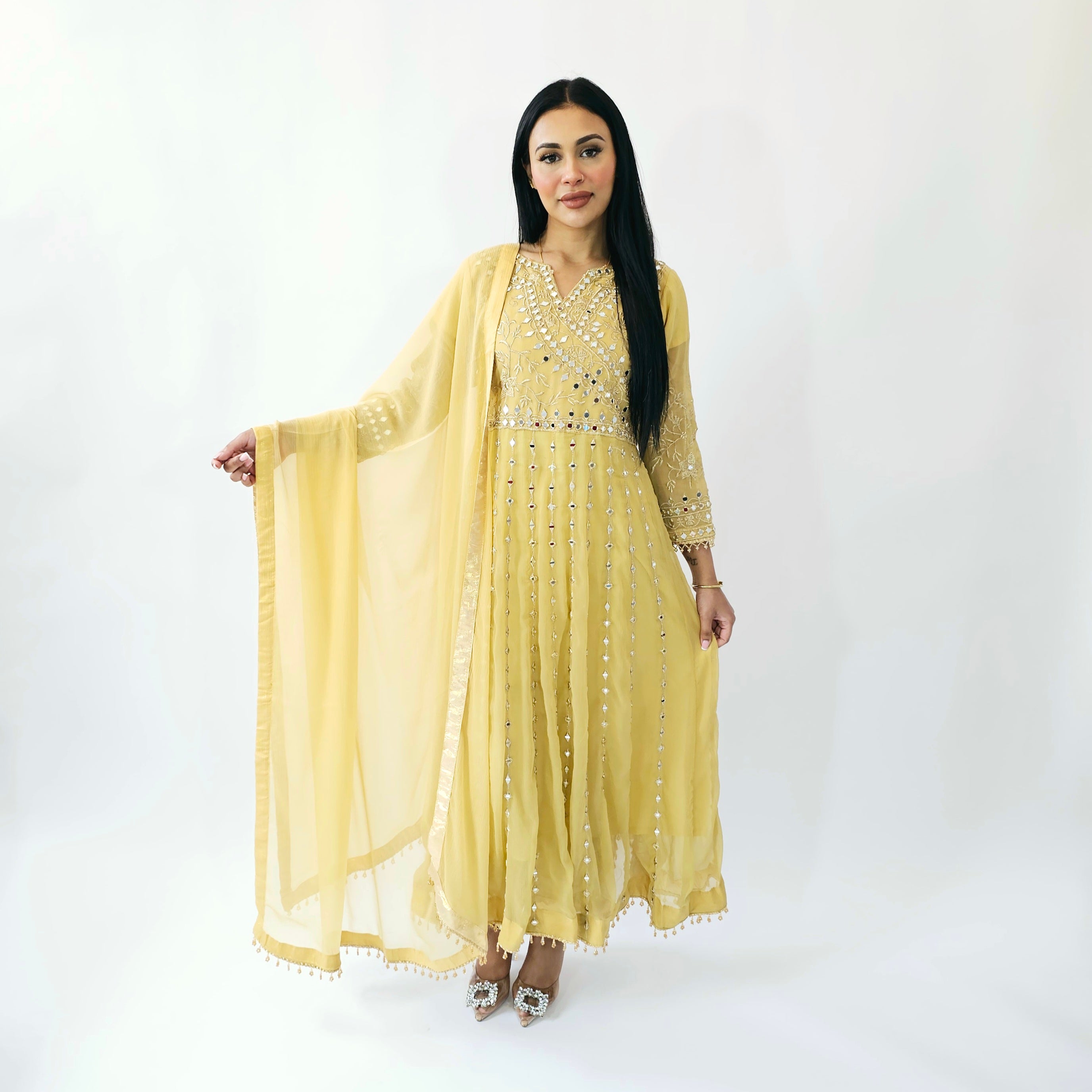• Beautiful embroidered dress  with mirror work with bead detailing